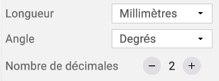 It is possible to define the units for Lengths or Angles as well as the number of decimal places: