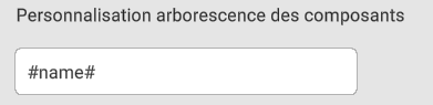 - Here you can modify the display of the component tree. #name# allows you to display the component name as it has been named in the design software; %PropertyName% allows you to display the property value directly in the metadata linked to the component in question (caution: requires full conversion). You can also add text or fixed characters.
