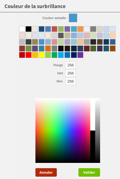 You can select a predefined color or use an RGB code to define the color: