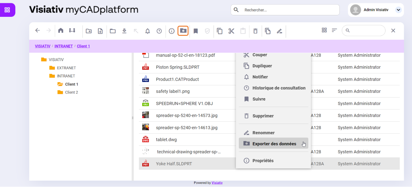 To extract document attributes into an Excel file, select one or more documents and/or folders, then select " ".Exporting data ". You need to be a platform administrator to carry out this export.