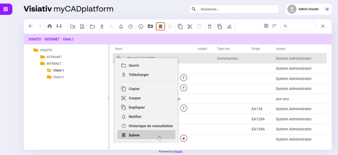 Visiativ myCADplatform enables users to subscribe to changes in a folder or document, so that they are automatically notified by email when new files are added or modified.