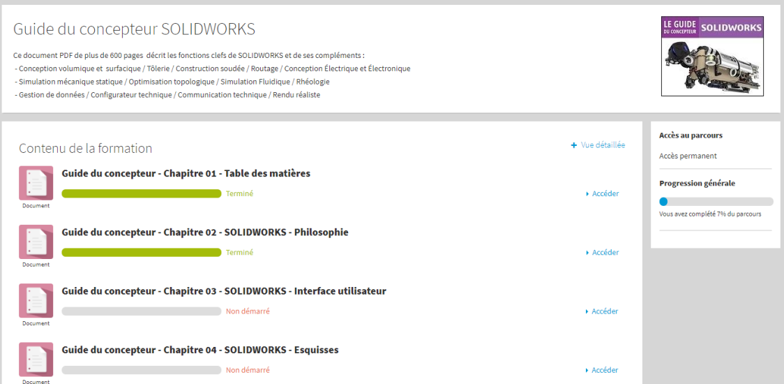 Avec un abonnement myCADservices Premium, vous avez accès au guide du concepteur SOLIDWORKS directement à partir de myCADlearning.