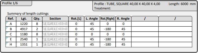 Es ist auch möglich, auszuwählen, welche Elemente im Bericht erscheinen sollen. In manchen Fällen kann es nämlich wünschenswert sein, nur die Schnittblätter und die Liste der zu bestellenden Stäbe zu exportieren und nicht die Zusammenfassung des gesamten Projekts.