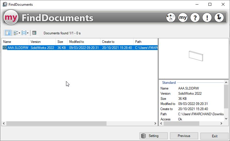 Mein Suchordner FindDocuments enthält eine Zeichnung, die zwei Referenzen für eine 3D-Datei enthält: