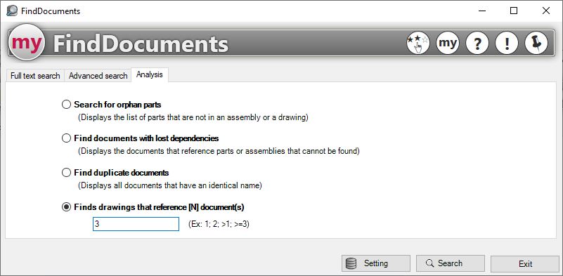 - Diese vierte Option listet alle Zeichnungen in Ihrem/Ihren Suchordner(n) auf, die sich auf [N] 3D-Dokumente beziehen.