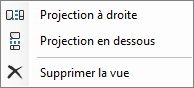 Wenn Sie mit der rechten Maustaste auf eine Ansicht klicken, die als Vorderansicht eingestellt ist, können Sie eine Projektion nach rechts oder unten durchführen.