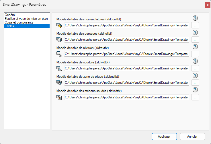 Die UnentbehrlichenSmartDrawingsOptionen Tische In diesem Abschnitt können Sie für jeden Tabellentyp die Vorlage auswählen, die Sie verwenden möchten.
