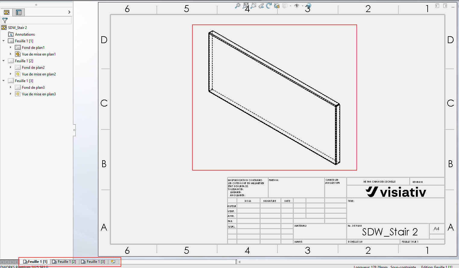 SmartDrawings generiert für jeden Blechkörper drei Blätter mit einer isometrischen Ansicht des Körpers.
