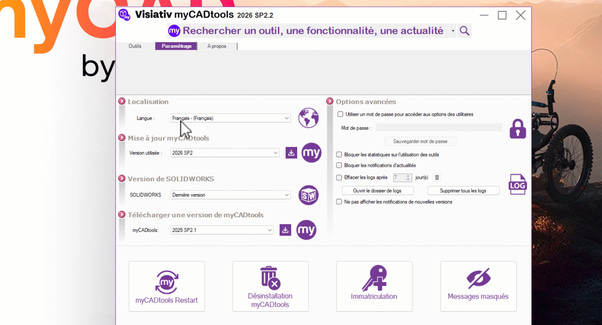 Since version 2026, myCADtools allows you to manage the different versions available online.