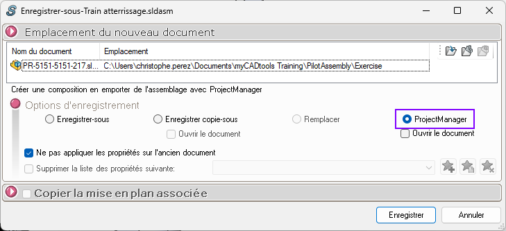 Once the values have been modified for PilotAssembly and in the mask, in order to launch the duplication, you will need to select Projectmanager or set SmartProperties to automatically launch ProjectManager.