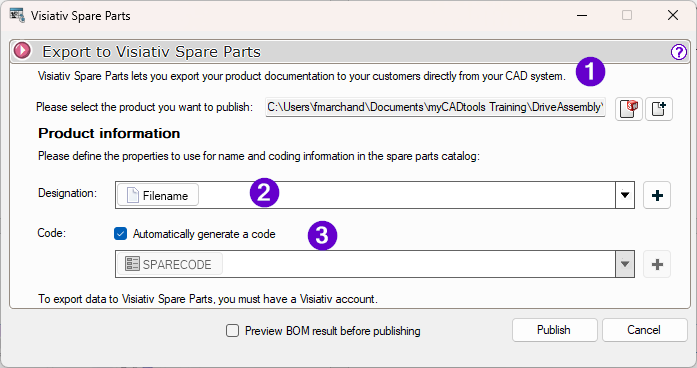 - Publication directe : l'assemblage est envoyé et publié sur Visiativ Spare Parts en quelques clics