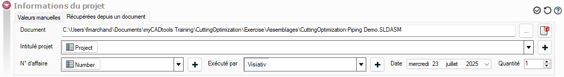 Dans ce cadre, il est possible de renseigner des informations sur le projet en cours.