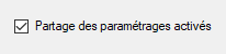 L'option de partage de paramétrage s'affiche à droite de l'emplacement. Vous pourrez la décocher si vous ne voulez plus utiliser le partage. Cela gardera les paramétrages en local (déconnecter) et ne seront donc plus synchronisés.