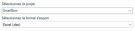 Il suffit juste de sélectionner le projet SmartBom que l'on souhaite utiliser et également le format d'export souhaité.