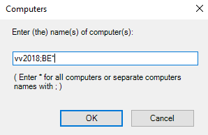 Der Name des Rechners kann exakt sein oder das Zeichen * allein oder in Kombination mit einer Zeichenkette.