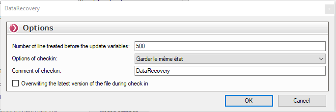 Für den Fall, dass die Eigenschaften beim Einchecken der Datei vorhanden sind, überschreibt die Werte, die Sie mit DataRecovery.
