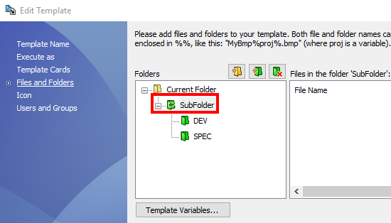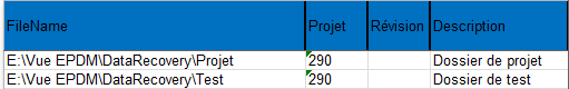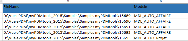 Um diese Ordner zu erstellen, müssen Sie die Spalte FileName der Excel-Datei mit dem vollständigen Pfad der zu erstellenden Mappe und definieren Sie eine Spalte, die den Namen der PDM-Mappenvorlage enthält.