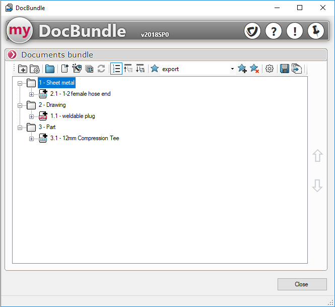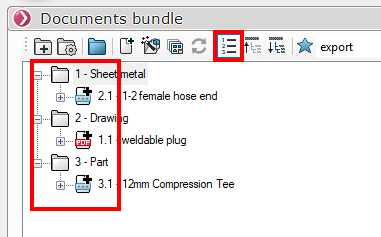 DocBundleVerwaltung des Dokumentenbündels Wählen aktivieren Das Symbol schaltet die Wählfunktion ein oder aus: Ohne Nummerierung. Mit Nummerierung. Sowohl die Gruppen als auch die Dateien sind nummeriert. Wenn die Nummerierung aktiviert ist, findet man sie auch in der erzeugten PDF-Datei.