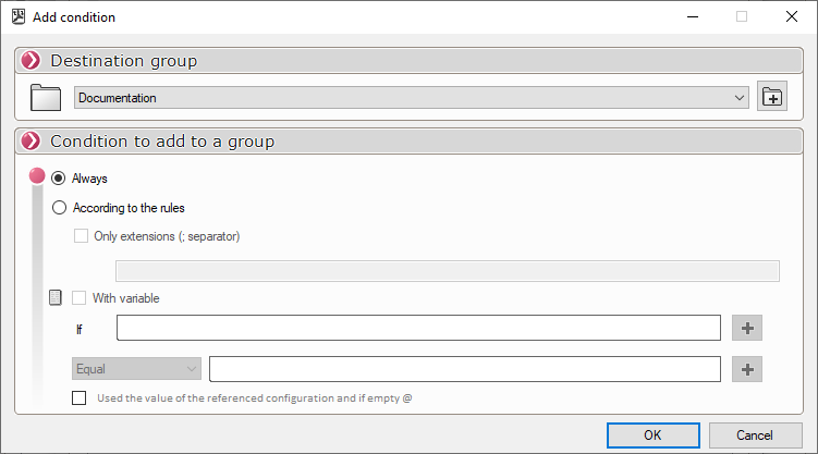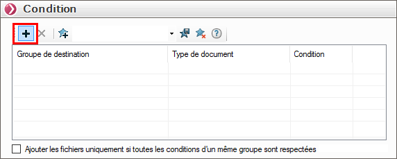 Die Option: Dateien nur hinzufügen, wenn alle Bedingungen in einer Gruppe erfüllt sind ermöglicht die Kombination von Bedingungen für das Hinzufügen eines Dokuments.