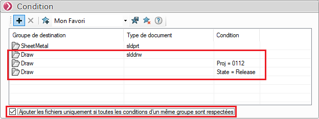 Wenn Sie diese Option zum Beispiel ankreuzen, werden die Dateien in den Ordner Draw nur, wenn alle drei Bedingungen erfüllt sind (wenn die Option nicht angekreuzt wäre, würde eine einzige gelöste Bedingung die Datei zum Ordner hinzufügen):