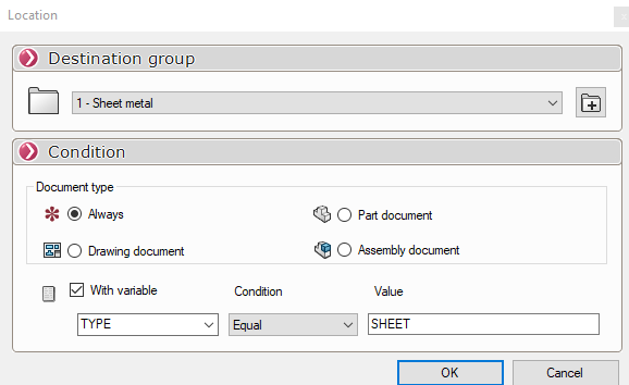 PS: Es ist möglich, eine Bedingung für die Dokumentart mit einer Bedingung für die Variable zu kombinieren.