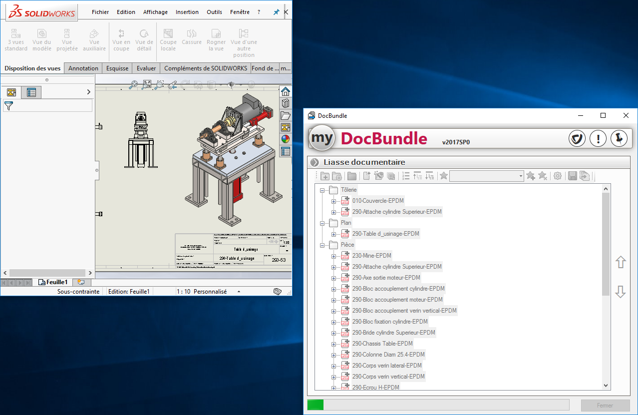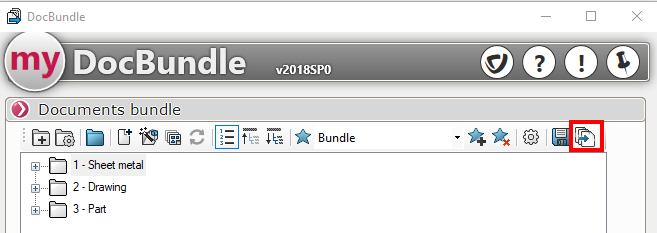 DocBundleBündel generieren Bündel aus DocBundle generieren Um ein Bündel zu generieren, klicken Sie einfach auf das Symbol Je nach den Einstellungen der Gruppen, DocBundle verwenden wird oder nicht SOLIDWORKS um die Dateien des Bündels zu erzeugen.