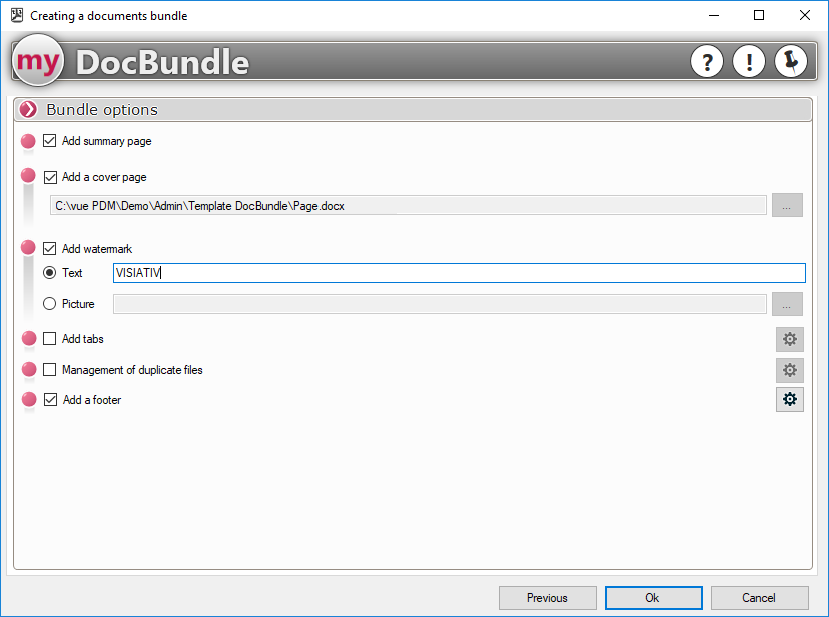 Ein Deckblatt kann dem Bündel auch hinzugefügt werden, indem Sie ankreuzen: