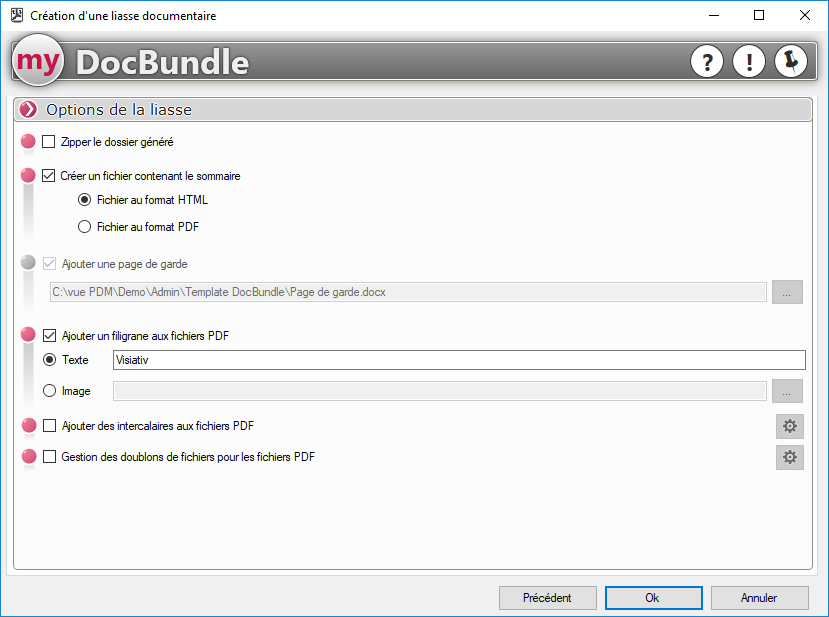 Diese Option ermöglicht es, vor jeder PDF-Datei einen benutzerdefinierten Bumper einzufügen, der Informationen aus der Datenkarte der PDM-Quelldatei übernehmen kann.