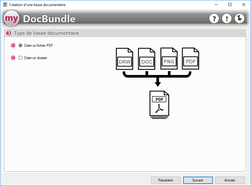 DocBundle ermöglicht die Bearbeitung eines Dokumentenbündels im PDF-Format oder die Erstellung eines Ordners, der alle Dateien des Dokumentenbündels enthält.