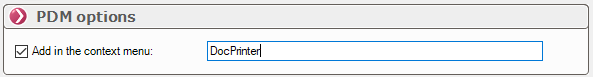 DocPrinter PDM-Optionen Hinzufügen im Kontextmenü: Mit dieser Option können Sie direkt aus dem Kontextmenü auf den Start der Aufgabe zugreifen.