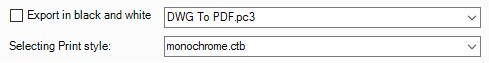 Mit diesen Optionen können Sie den Namen des autoCAD-Plotters, der den PDF-Export ermöglicht, und den Druckstil (z. B. Farbe oder Schwarzweiß) festlegen.