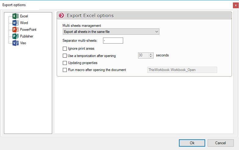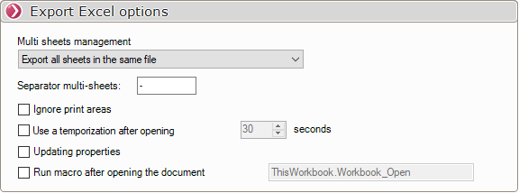 Es ist möglich, den Exportmodus in Bezug auf die Blätter der Arbeitsmappe einzustellen: