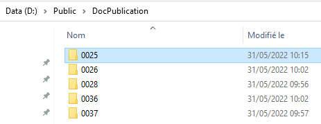 In diesem Fall sucht DocPublication nach dem Ordner, und wenn mehrere Ordner übereinstimmen, wird die Datei in den ersten Ordner gelegt, den DocPublication findet.