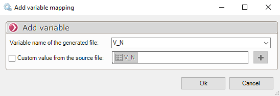 In diesem Bildschirm können Sie Variablen hinzufügen, die in der Datenkarte der erzeugten Ausgabedatei aktualisiert oder kopiert werden sollen.