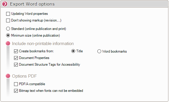 -Marken nicht veröffentlichen: Diese Option bewirkt, dass nicht alle Anmerkungen, die über die Registerkarte Revision in Word erstellt wurden, exportiert werden (Kommentar , Revision , ...).