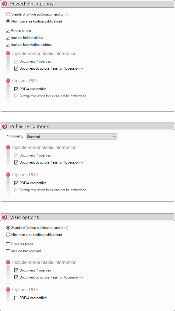 In DocPublication können Sie auch Optionen für die Formate PowerPoint/Publisher/Visio.