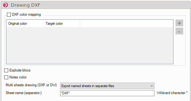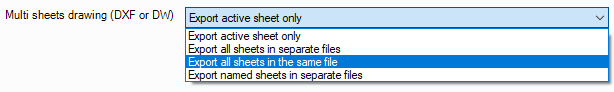 - Alle Blätter in eine einzige Datei exportieren: Eine DXF-Datei, die alle Blätter der ausgewählten Zeichnung enthält.