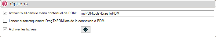 Im Optionsfenster können Sie das Kontextmenü einstellen, mit dem das Werkzeug zum Starten von DragToPDM aktiviert wird.
