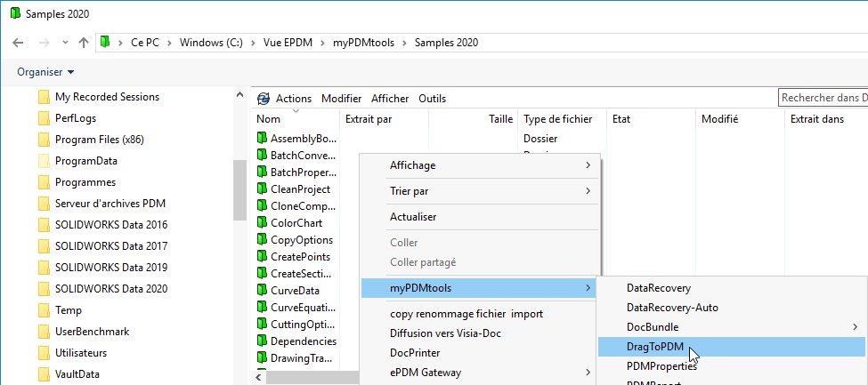 Um ein Untermenü zu erstellen, fügen Sie einfach den Namen des übergeordneten Menüs gefolgt von einem \ und dem Namen, den Sie dem DragToPDM-Werkzeug geben möchten, hinzu. In diesem Beispiel lautet das Ergebnis: