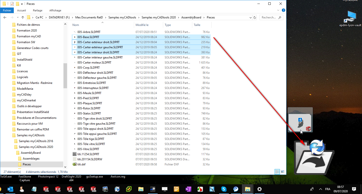 Wenn die Regeln festgelegt sind, wählen Sie einfach eine Liste von Dateien aus einem Windows Explorer außerhalb der Dokumentenverwaltung aus und ziehen sie auf das DragToPDM-Symbol: