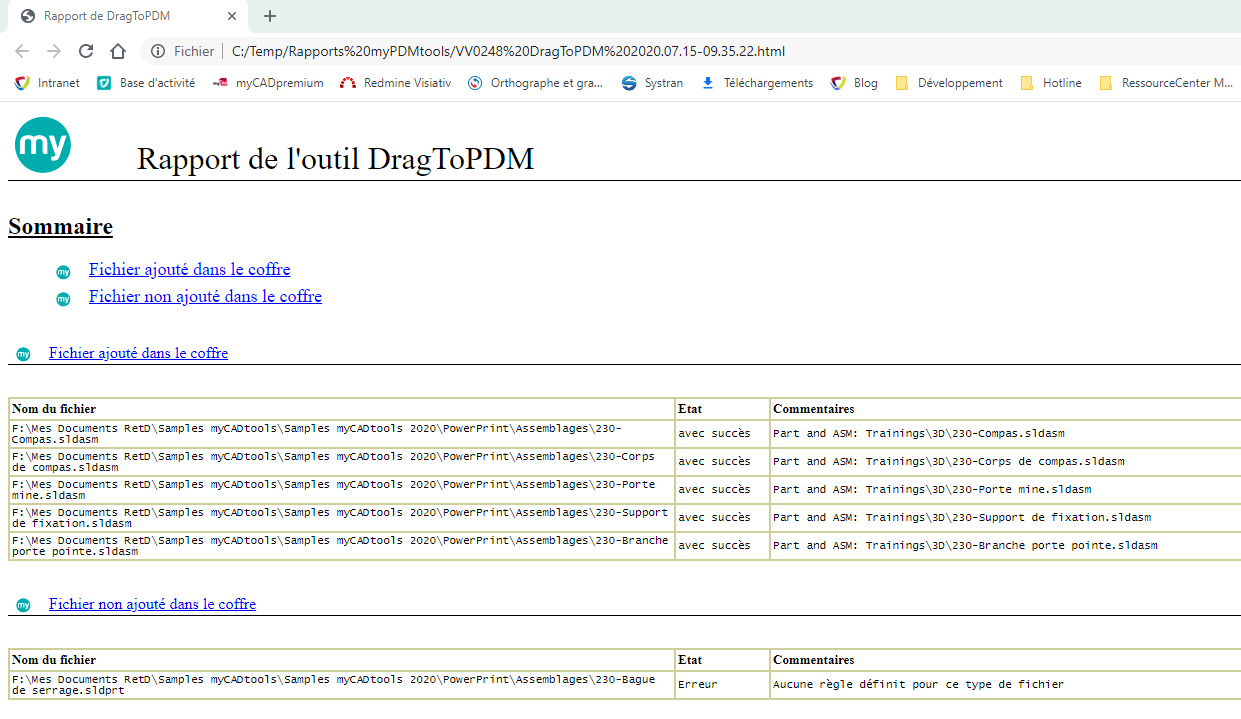 - Einen Bericht der letzten Sitzung erhalten DragToPDM mit den Dateien, die möglicherweise zur Dokumentenverwaltung hinzugefügt wurden oder nicht PDM: