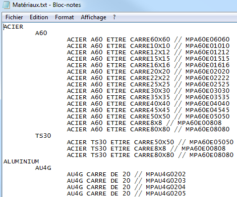 Nehmen wir dieses Beispiel einer Datei Materialien.txt.