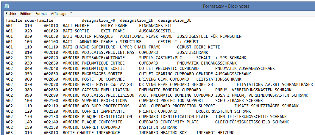 Nehmen wir dieses Beispiel einer Datei Format.csv.