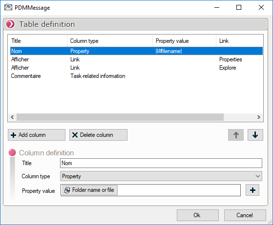 In die Spalten der Tabelle können auch PDM-Variablen integriert werden: