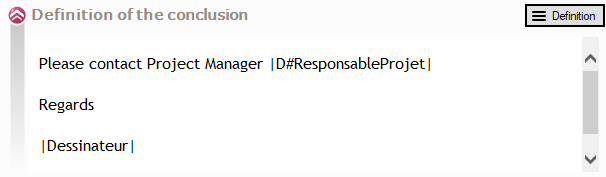 Der Text kann auch PDM-Variablen einbetten, z. B. die Namen von PDM-Benutzern: