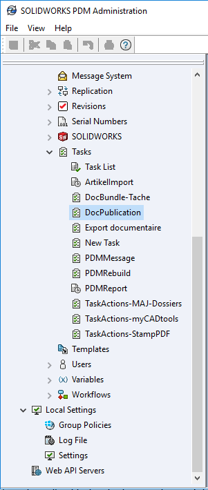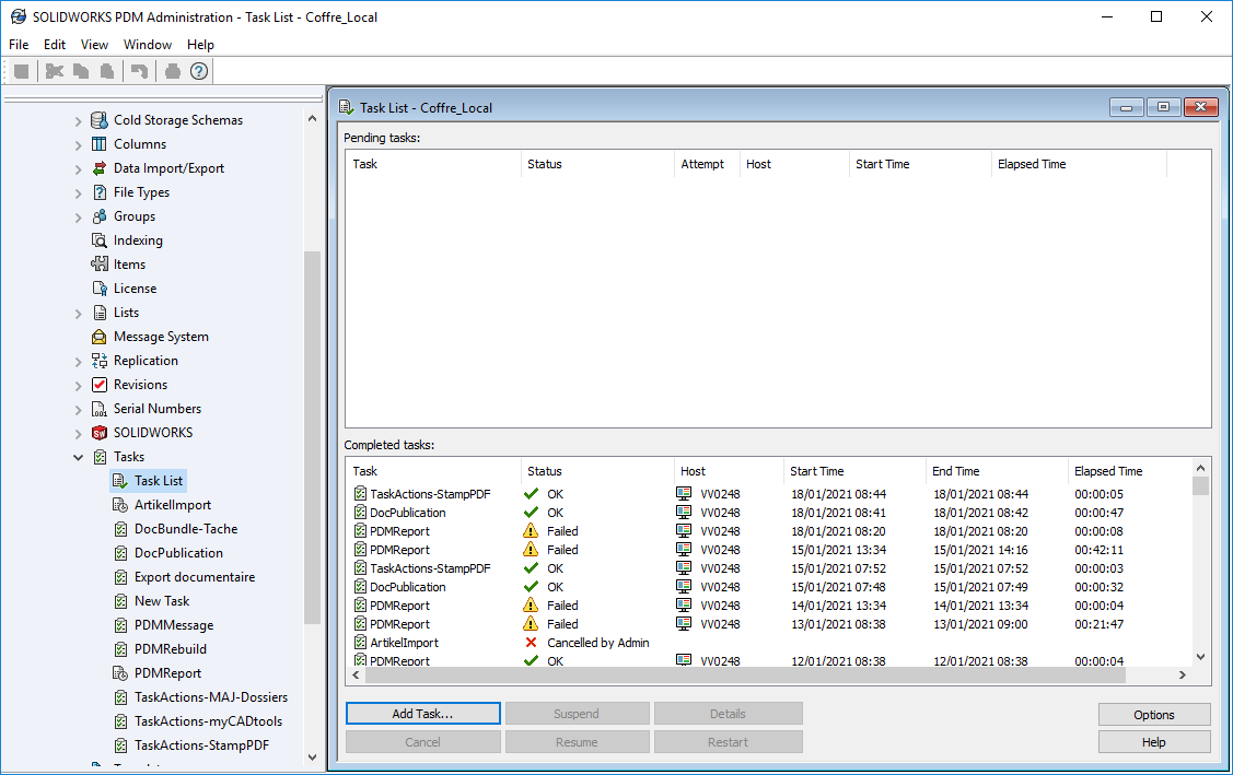 Um eine Aufgabe zu überprüfen, müssen Sie die Aufgabenliste aus der PDM-Administration öffnen: