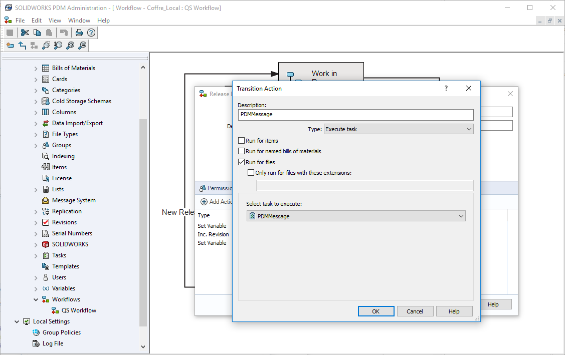 Schließlich können Sie durch Änderung des PDM-Workflows eine Aktion ausführen PDMMessage bei Ihren Übergängen:
