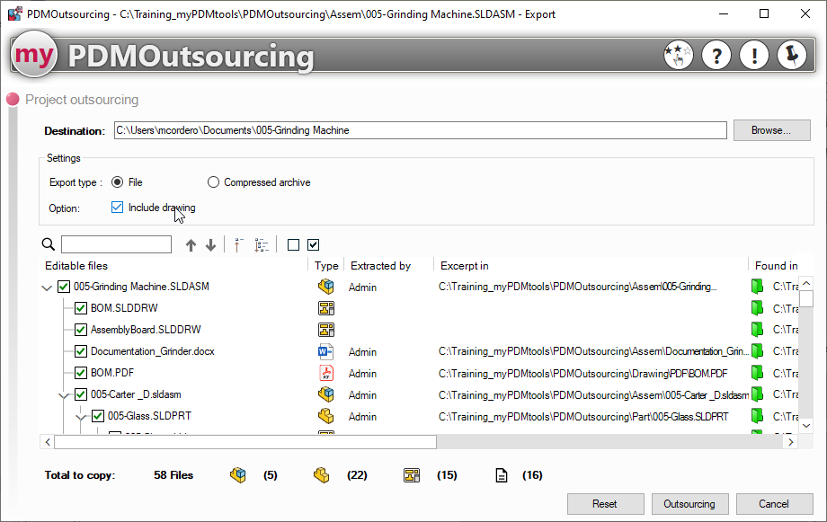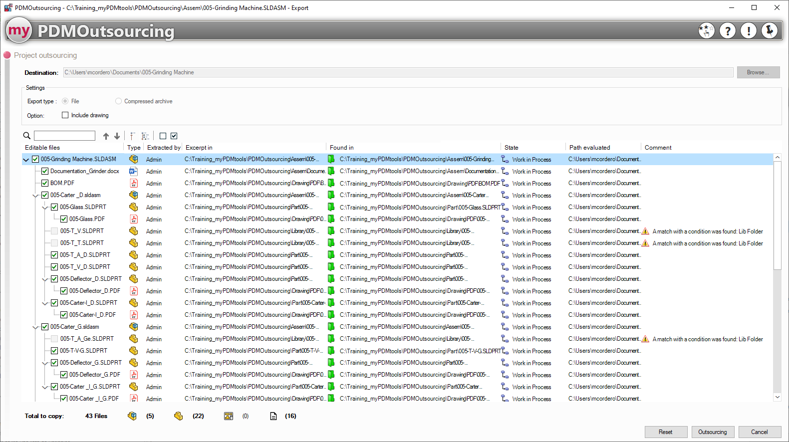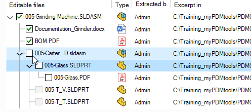 Um eine Auslagerung zu erstellen, starten Sie das Werkzeug einfach vom PDM-Explorer aus auf einem SOLIDWORKS Dokument: