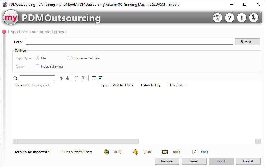 Um eine Auslagerung zu löschen, starten Sie einfach PDMOutsourcing in der Datei, für die die Auslagerung erstellt wurde, erneut: