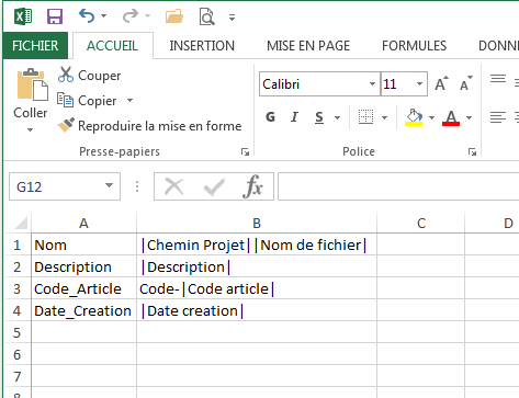 Die Datei im xls-Format enthält die Informationen der in der Schnittstelle definierten Variablen: Name und Wert.